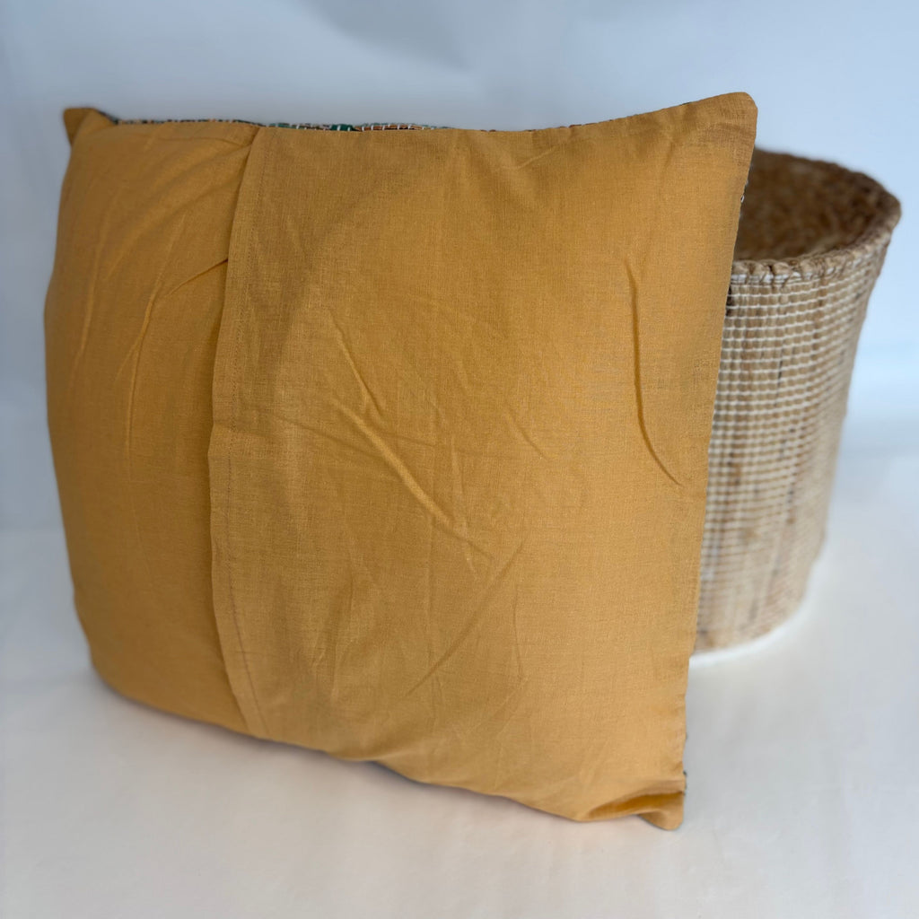 The reverse side is plain mustard with a simple envelope closure for easy use and care.